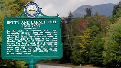 Lee Spiegel, “Betty And Barney Hill UFO Abduction Story Commemorated On Official N.H. Highway Plaque”:
